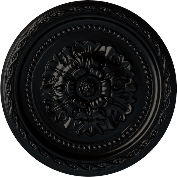 Palmetto Ceiling Medallion, Hand-Painted Jet Black, 11 1/2"OD x 1"P
