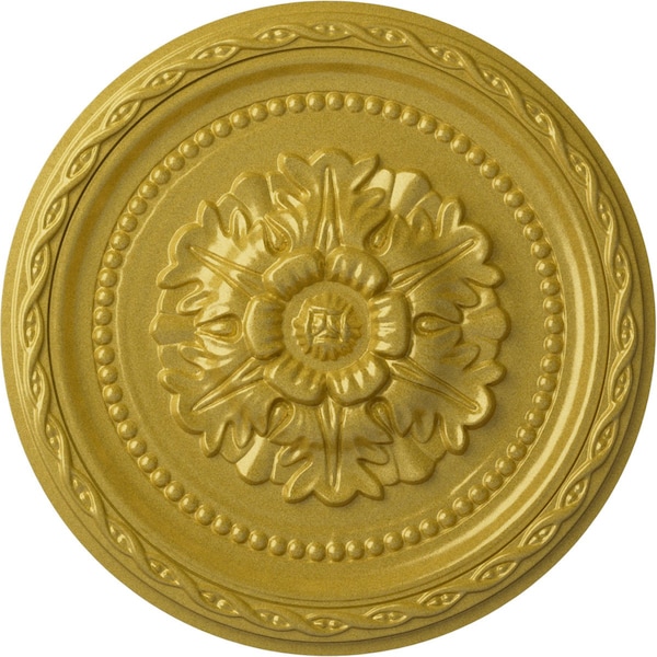 Palmetto Ceiling Medallion, Hand-Painted Rich Gold, 11 1/2"OD x 1"P