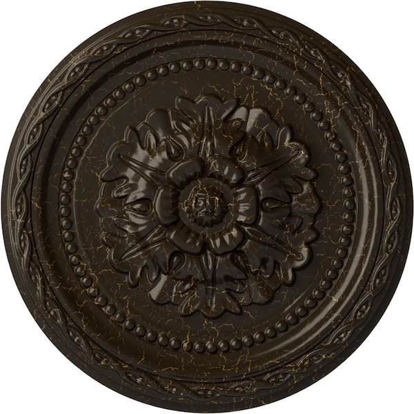 Palmetto Ceiling Medallion, Hand-Painted Stone Hearth Crackle, 11 1/2"OD x 1"P