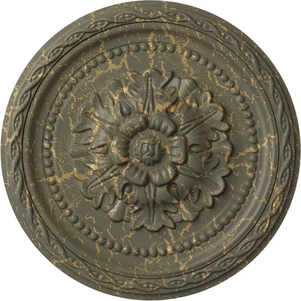 Palmetto Ceiling Medallion, Hand-Painted Witch Hazel Crackle, 11 1/2"OD x 1"P