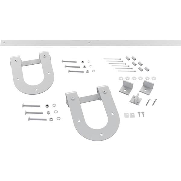 - Includes: 2 Standard Series J-horseshoe hangers, 2 track stops, 2 anti-jump blocks, floor T-guide and all necessary bolts, screws, spacers, etc. for one door.