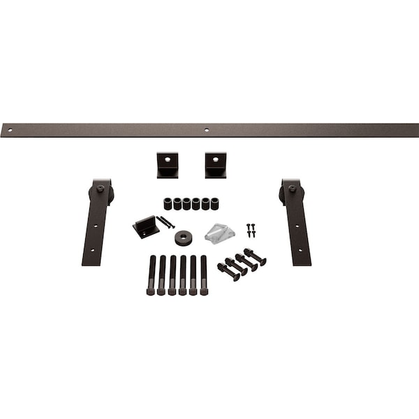Premium J-Strap Barn Door Hardware Set w/ 4' Track for 1 3/4" Doors, Bronze Texture