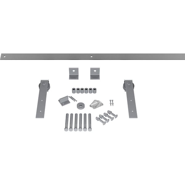 Premium J-Strap Barn Door Hardware Set w/ 4' Track for 2 1/4" Doors, Flint Gray