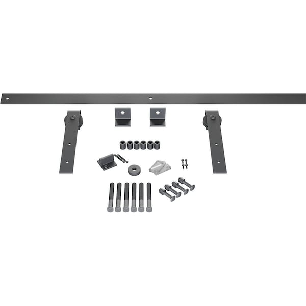 Premium J-Strap Barn Door Hardware Set w/ 5' Track for 2 1/4" Doors, Silver Metallic