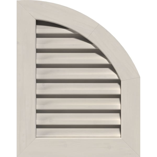 Quarter Round Top Right Primed, Functional, Pine Gable Vent w/ 1" x 4" Flat Trim Frame, 12"W x 26"H