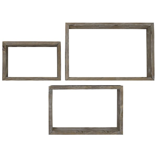 Rectangle, Open Back, Vintage Farmhouse Shadow Box Shelves, Barnwood Decor Collection, PK3