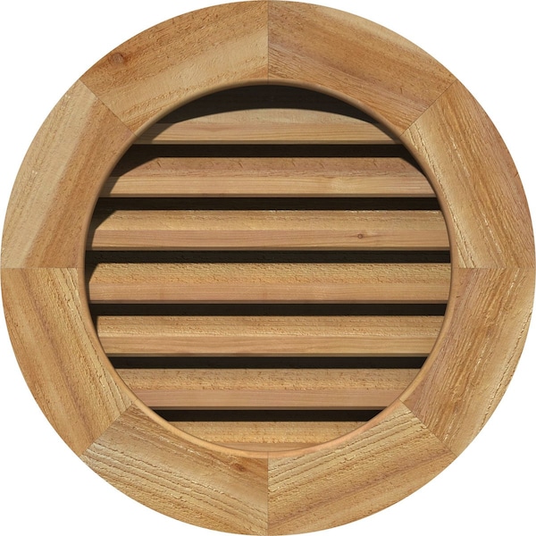 Round Gable Vent Functional, Western Red Cedar Gable Vent w/ 1" x 4" Flat Trim Frame, 16"W x 16"H