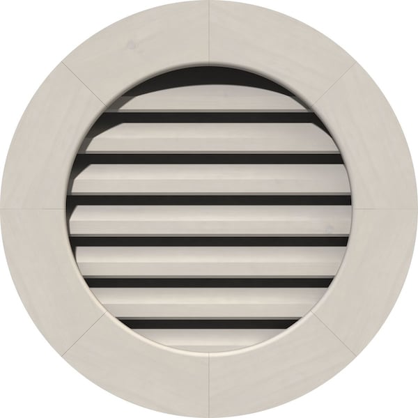 Round Gable Vent Primed, Functional, Pine Gable Vent w/ 1" x 4" Flat Trim Frame, 28"W x 28"H