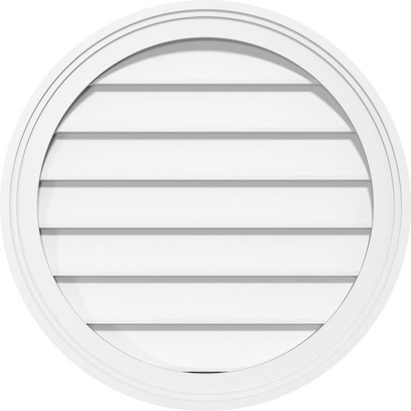 Round Surface Mount PVC Gable Vent: Non-Functional, w/ 2"W x 1-1/2"P Brickmould Frame, 20"W x 20"H