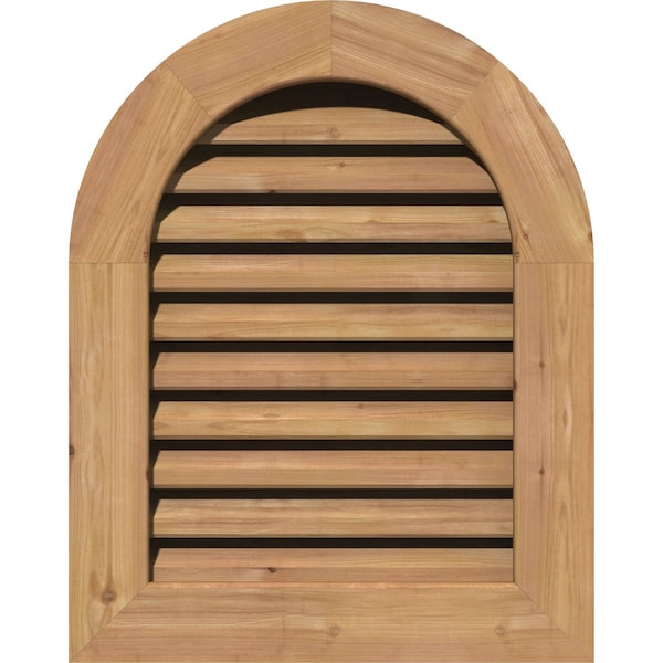 Round Top Gable Vent Functional, Western Red Cedar Gable Vent w/1" x 4" Flat Trim Frame, 24"W x 36"H