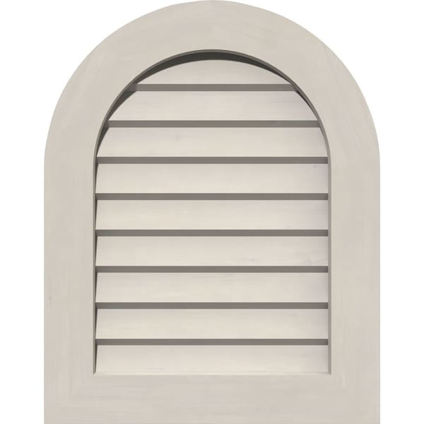 Round Top Gable Vent Primed, Non-Functional, Pine Gable Vent w/ Decorative Face Frame, 14"W x 20"H