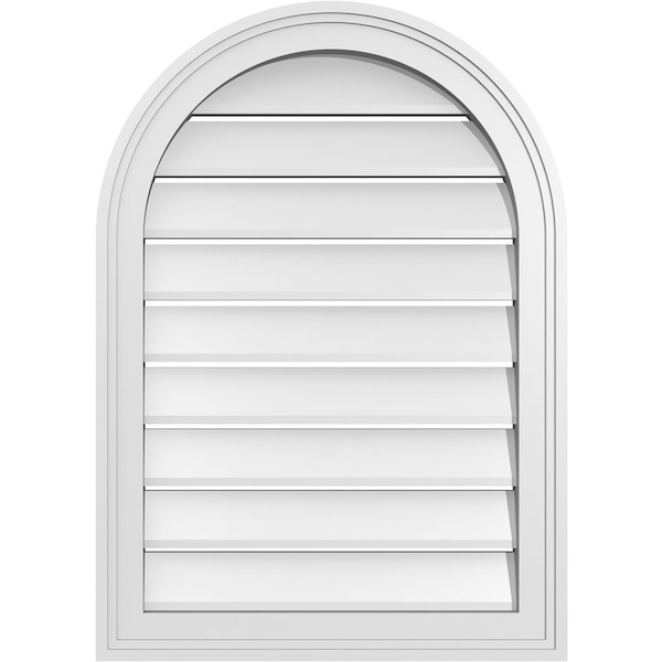 Round Top Surface Mount PVC Gable Vent: Functional, w/ 2"W x 1-1/2"P Brickmould Frame, 20"W x 28"H