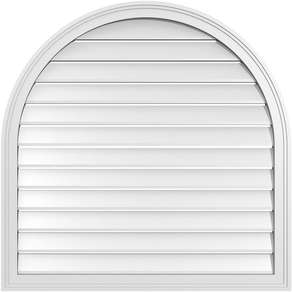 Round Top Surface Mount PVC Gable Vent: Functional, w/ 2"W x 1-1/2"P Brickmould Frame, 36"W x 36"H