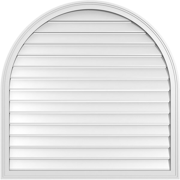 Round Top Surface Mount PVC Gable Vent: Functional, w/ 2"W x 1-1/2"P Brickmould Frame, 42"W x 42"H