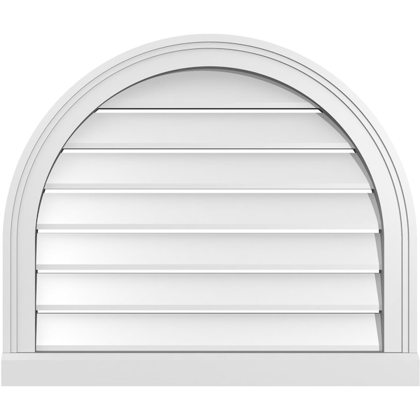 Round Top Surface Mount PVC Gable Vent: Functional, w/ 2"W x 2"P Brickmould Sill Frame, 26"W x 22"H