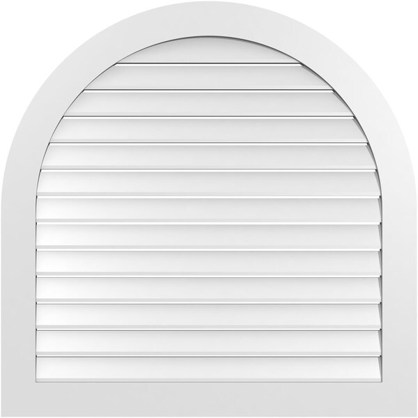 Round Top Surface Mount PVC Gable Vent: Functional, w/ 3-1/2"W x 1"P Standard Frame, 42"W x 42"H