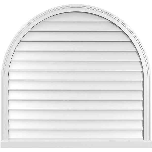 Round Top Surface Mount PVC Gable Vent w/ 2"W x 2"P Brickmould Sill Frame, 42"W x 40"H