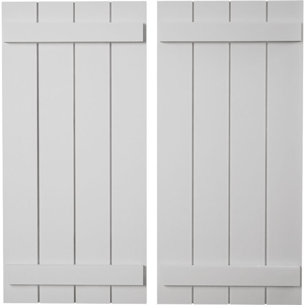 Rustic Four Board Joined Board-n-Batten Smooth Faux Wood Shutters (Per Pair), Primed Tan, 22"Wx48"H