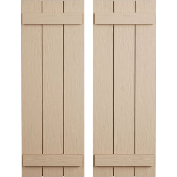 Rustic Three Board Joined Board-n-Batten Rough Sawn Faux Wood Shutters, 16 1/2W x 32H, PR