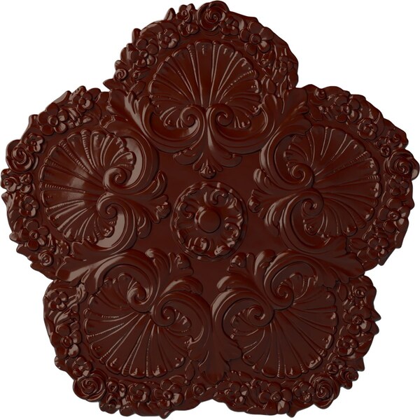 Shell Ceiling Medallion, Hand-Painted Brushed Mahogany, 25 5/8"OD x 1"P