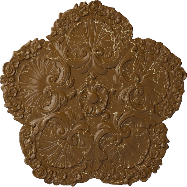 Shell Ceiling Medallion, Hand-Painted Smokey Topaz Crackle, 25 5/8"OD x 1"P