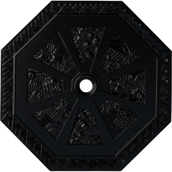 Spring Octagonal Ceiling Medallion (Canopies up to 3"), 29 1/8"OD x 2 1/4"ID x 1 1/8"P, Jet Black