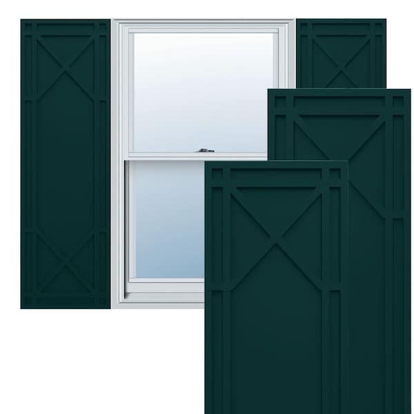 True Fit PVC Bungalow Fixed Mount Shutters, Thermal Green, 18W x 44H, PR