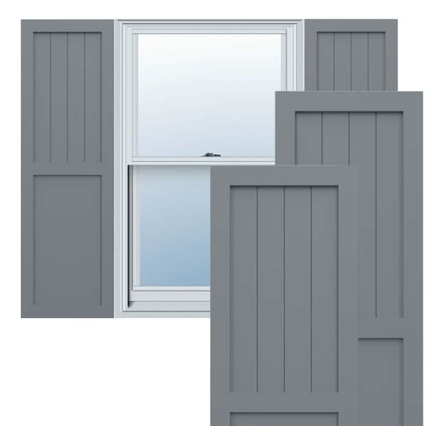 True Fit PVC Farmhouse/Flat Panel Combination Fixed Mount Shutters, Ocean Swell, 15W x 40H, PR