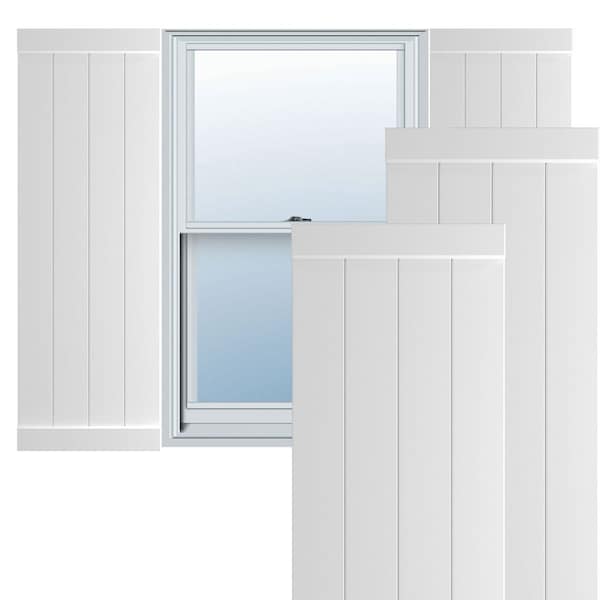 True Fit PVC, Four Board Joined Board-n-Batten Shutters w/End Batten, Unfinished, 21 1/2W x 75H, PR