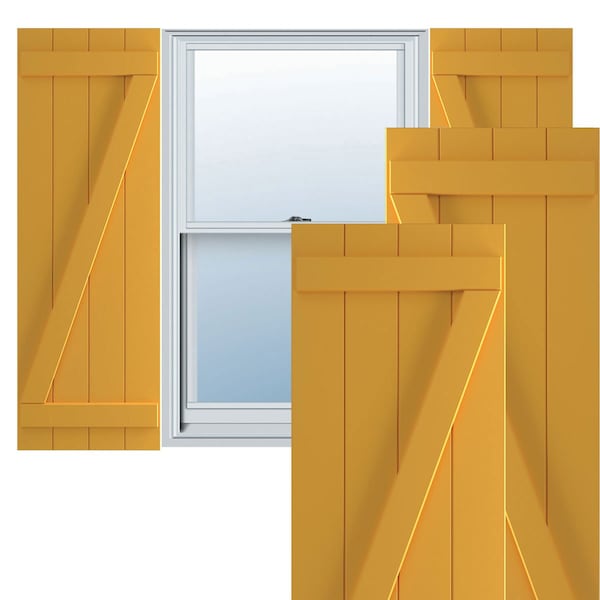 True Fit PVC, Four Board Joined Board-n-Batten Shutters w/Z-Bar, Turmeric , 21 1/2W x 80H, PR