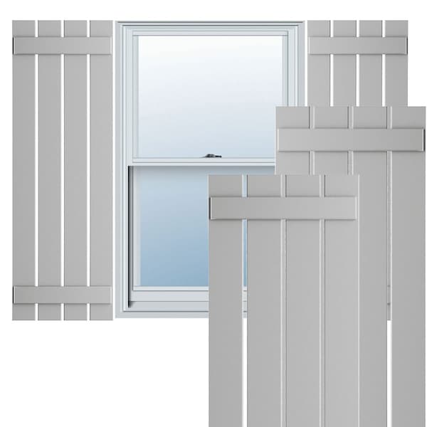 True Fit PVC Four Board Spaced Board-n-Batten Shutters, Hailstorm Gray , 23W x 62H, PR