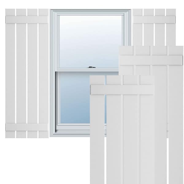 True Fit PVC Four Board Spaced Board-n-Batten Shutters, White , 23W x 42H, PR