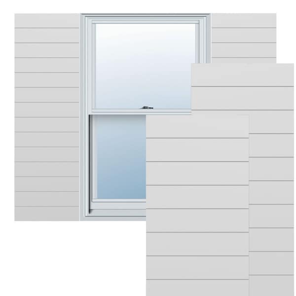 True Fit PVC Horizontal Slat Modern Style Fixed Mount Shutters, White, 12W x 37H, PR