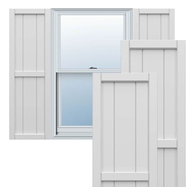 True Fit PVC, Three Board Framed Board-n-Batten Shutters, White, 16 1/8W x 86H, PR