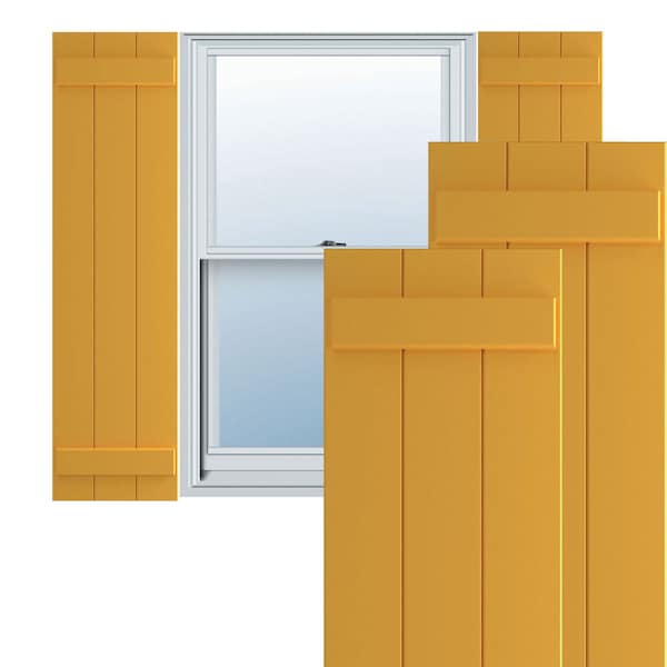 True Fit PVC, Three Board Joined Board-n-Batten Shutters, Turmeric, 16 1/8W x 62H, PR