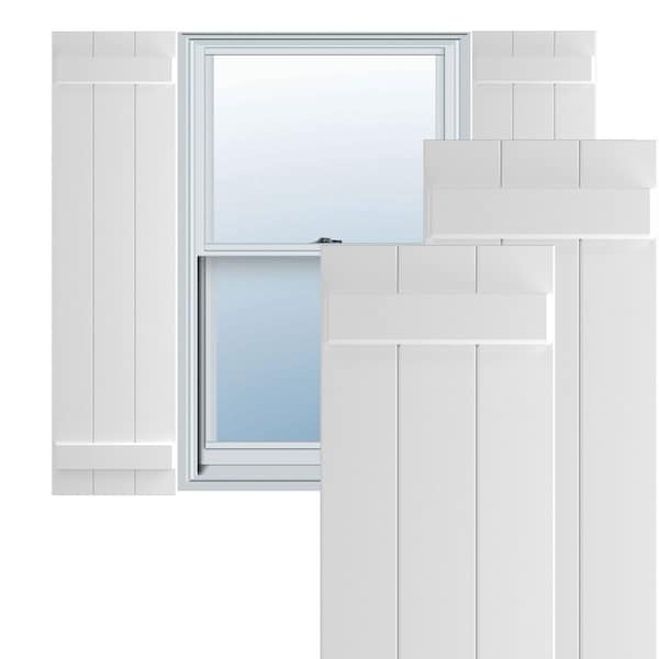True Fit PVC Three Board Joined Board-n-Batten Shutters, Unfinished, 16 1/8W x 62H, PR