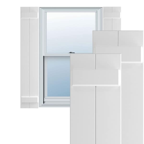 True Fit PVC Two Board Joined Board-n-Batten Shutters, White, 10 3/4W x 80H, PR