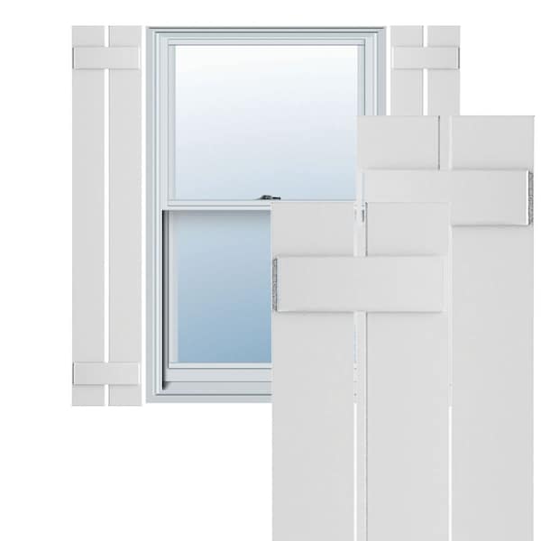 True Fit PVC Two Board Spaced Board-n-Batten Shutters, White, 11 1/4W x 44H, PR