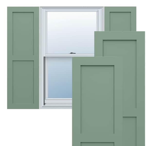 True Fit PVC Two Equal Flat Panel Shutters, Track Green, 15W x 59H, PR