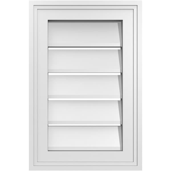 Vertical Surface Mount PVC Gable Vent: Functional, w/ 2"W x 1-1/2"P Brickmould Frame, 12"W x 18"H