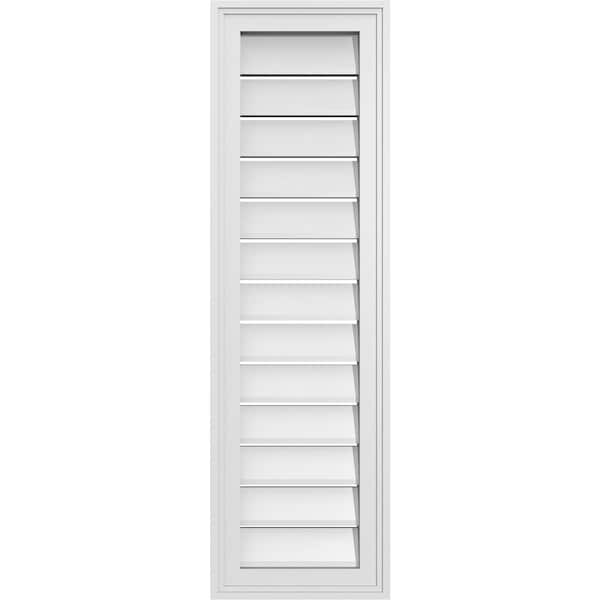 Vertical Surface Mount PVC Gable Vent: Functional, w/ 2"W x 1-1/2"P Brickmould Frame, 12"W x 40"H