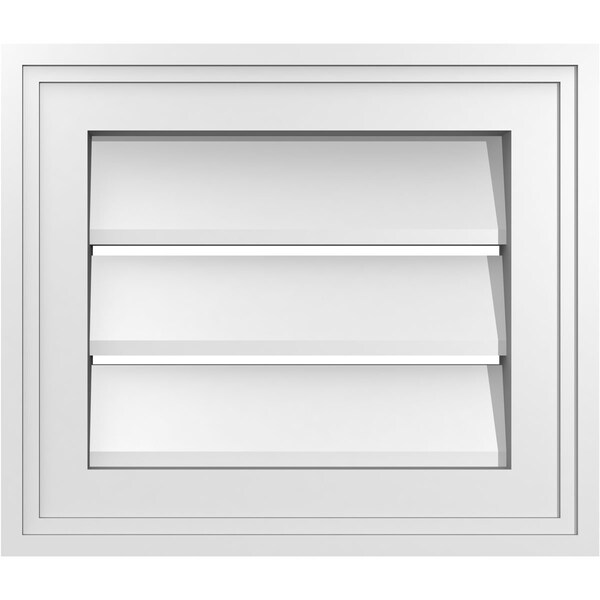 Vertical Surface Mount PVC Gable Vent: Functional, w/ 2"W x 1-1/2"P Brickmould Frame, 14"W x 12"H