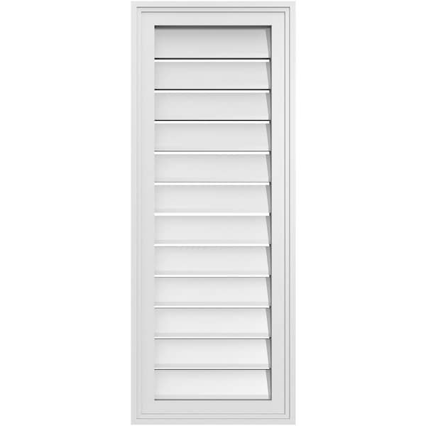 Vertical Surface Mount PVC Gable Vent: Functional, w/ 2"W x 1-1/2"P Brickmould Frame, 14"W x 36"H
