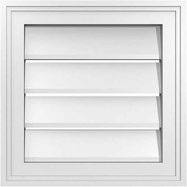 Vertical Surface Mount PVC Gable Vent: Functional, w/ 2"W x 1-1/2"P Brickmould Frame, 16"W x 16"H