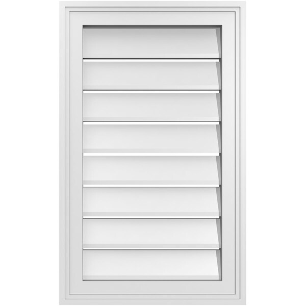Vertical Surface Mount PVC Gable Vent: Functional, w/ 2"W x 1-1/2"P Brickmould Frame, 16"W x 26"H
