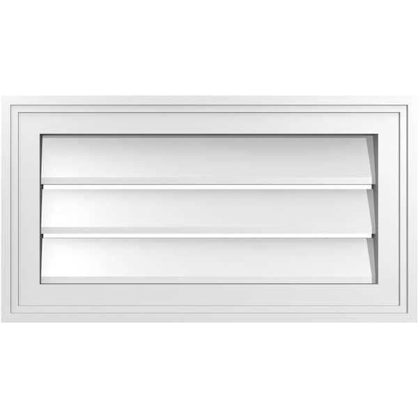 Vertical Surface Mount PVC Gable Vent: Functional, w/ 2"W x 1-1/2"P Brickmould Frame, 22"W x 12"H