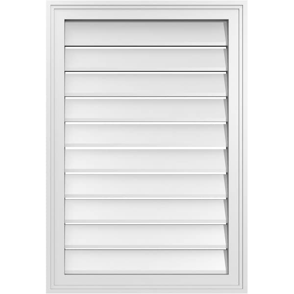 Vertical Surface Mount PVC Gable Vent: Functional, w/ 2"W x 1-1/2"P Brickmould Frame, 22"W x 32"H
