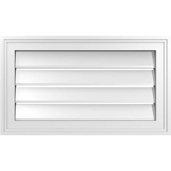 Vertical Surface Mount PVC Gable Vent: Functional, w/ 2"W x 1-1/2"P Brickmould Frame, 24"W x 14"H