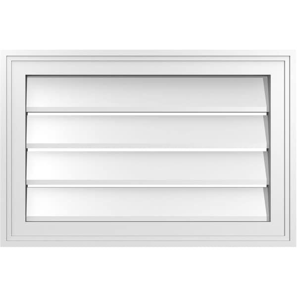 Vertical Surface Mount PVC Gable Vent: Functional, w/ 2"W x 1-1/2"P Brickmould Frame, 24"W x 16"H