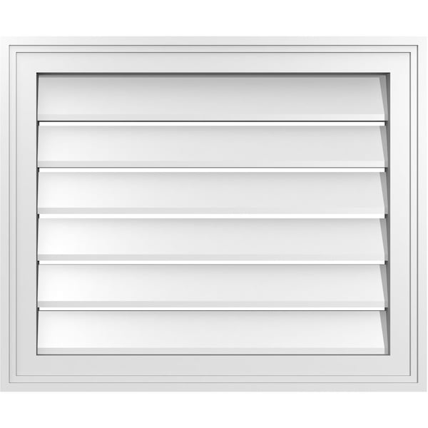 Vertical Surface Mount PVC Gable Vent: Functional, w/ 2"W x 1-1/2"P Brickmould Frame, 24"W x 20"H